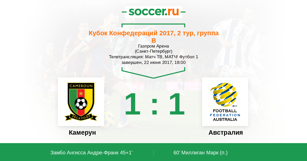 Только приехал включил телевизор и увидел фокусы камерунцев и вратаря австралов :)