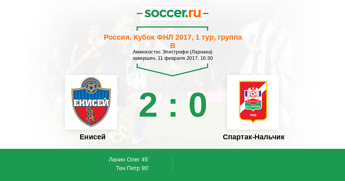 Протокол матча Енисей против Спартак-Нальчик