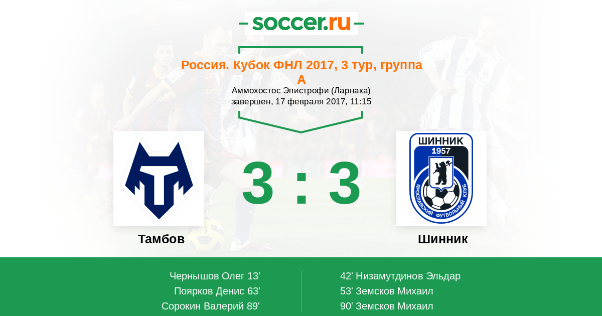 Протокол матча Тамбов против Шинник