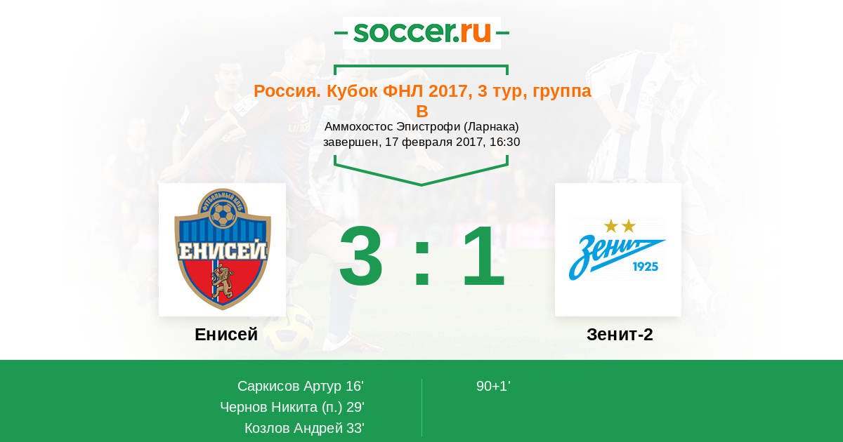 Протокол матча Енисей против Зенит-2
