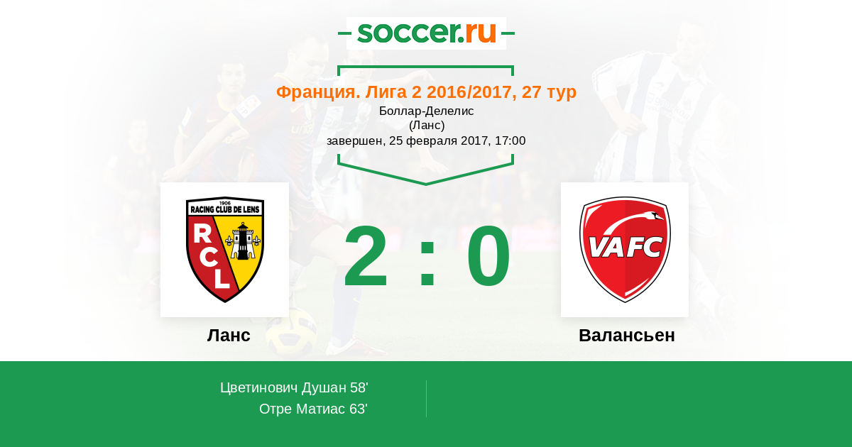 Протокол матча Ланс против Валансьен