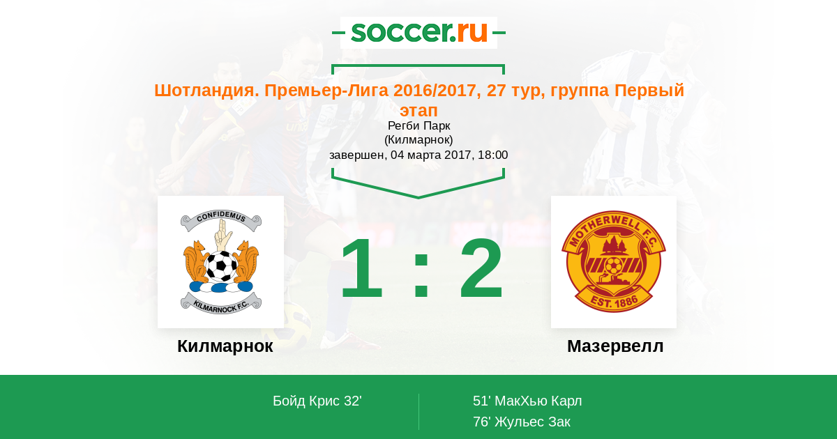 Протокол матча Килмарнок против Мазервелл