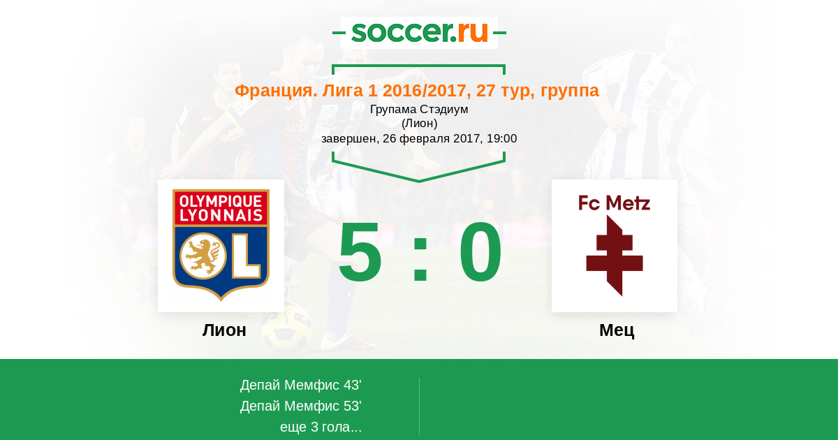 Протокол матча Лион против Мец