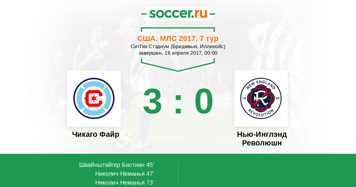 Протокол матча Чикаго Файр против Нью-Инглэнд Революшн