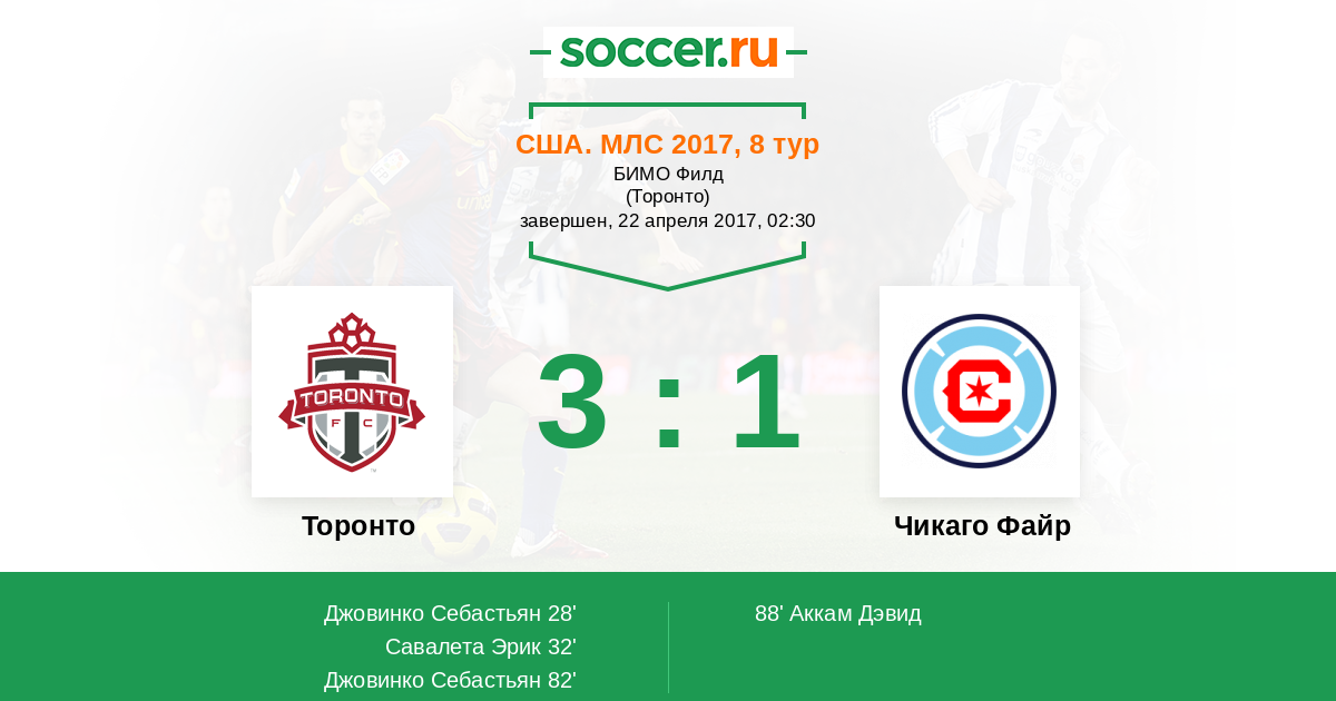 Протокол матча Торонто против Чикаго Файр