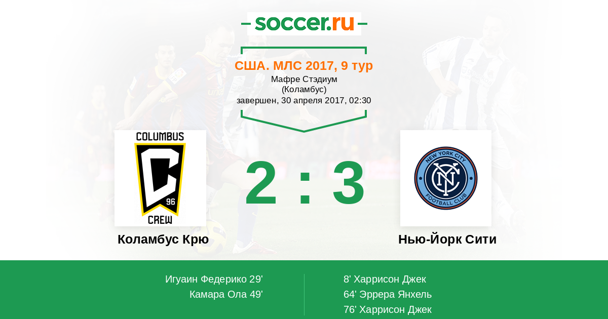 Протокол матча Коламбус Крю против Нью-Йорк Сити