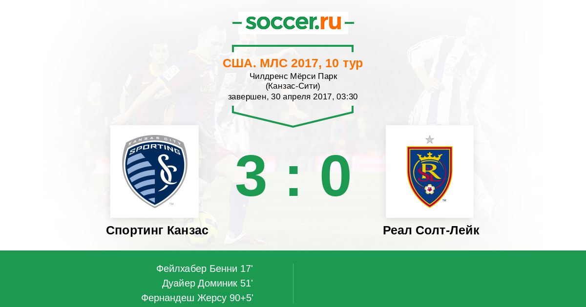 Протокол матча Спортинг Канзас против Реал Солт-Лейк