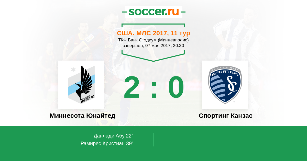 Протокол матча Миннесота Юнайтед против Спортинг Канзас