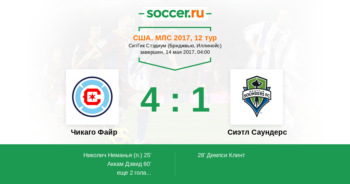 Протокол матча Чикаго Файр против Сиэтл Саундерс