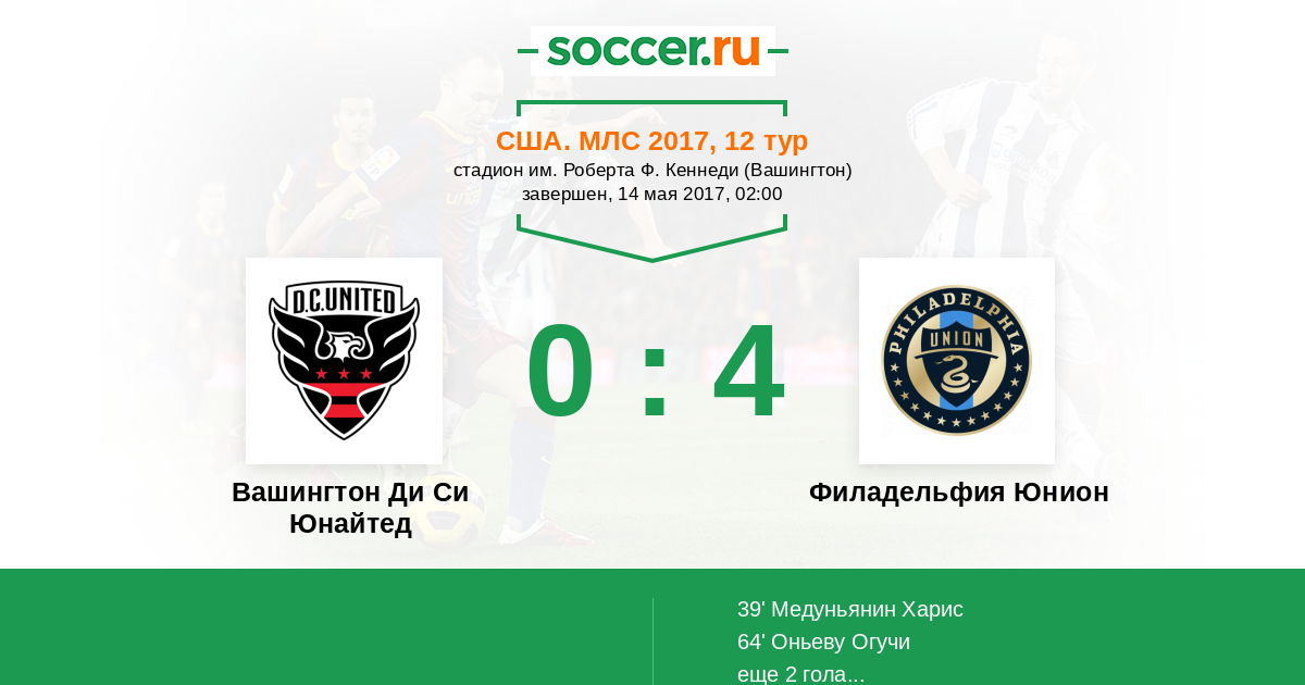 Протокол матча Вашингтон Ди Си Юнайтед против Филадельфия Юнион