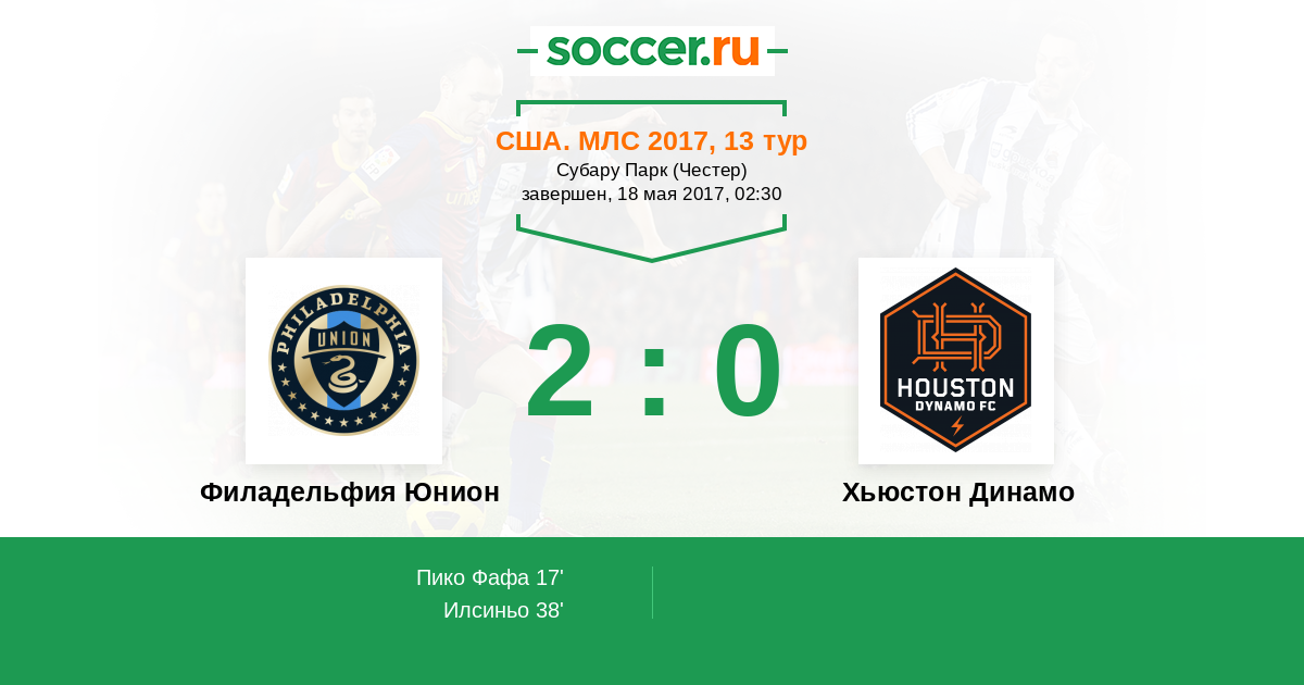 Протокол матча Филадельфия Юнион против Хьюстон Динамо
