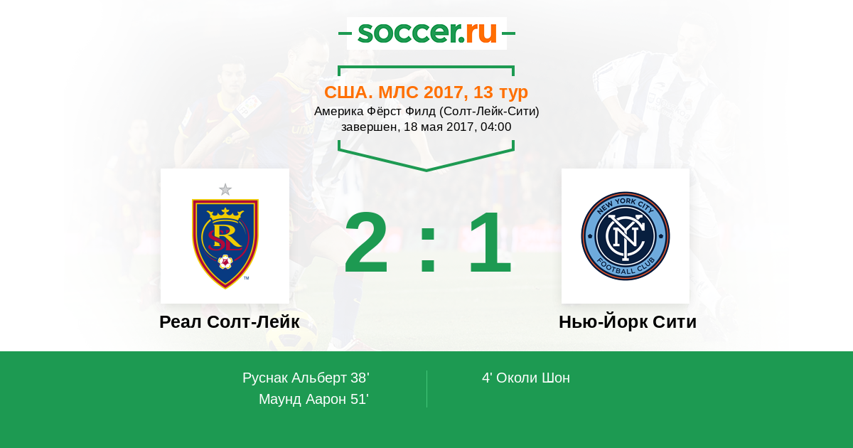 Протокол матча Реал Солт-Лейк против Нью-Йорк Сити