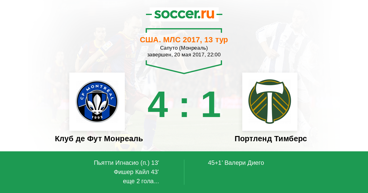 Протокол матча Клуб де Фут Монреаль против Портленд Тимберс