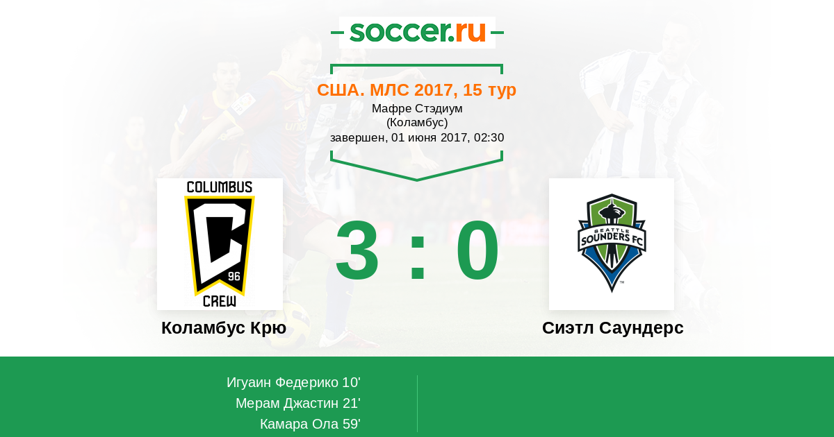 Протокол матча Коламбус Крю против Сиэтл Саундерс