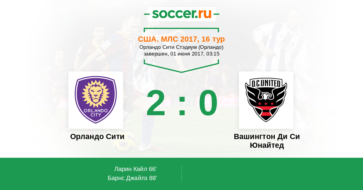 Протокол матча Орландо Сити против Вашингтон Ди Си Юнайтед