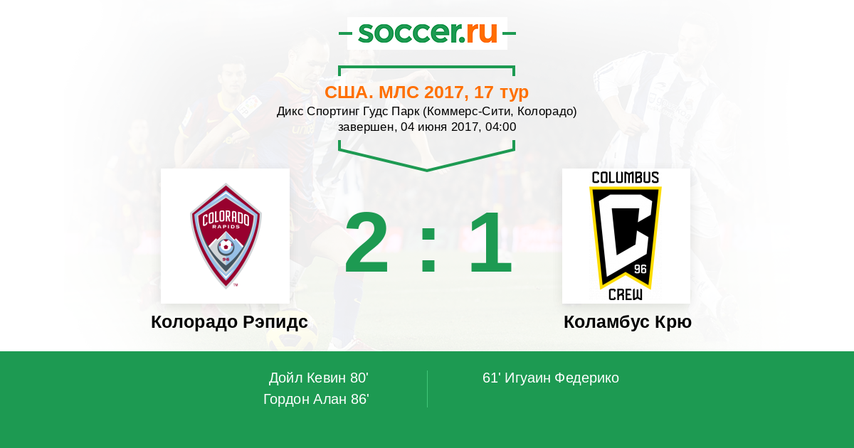 Протокол матча Колорадо Рэпидс против Коламбус Крю