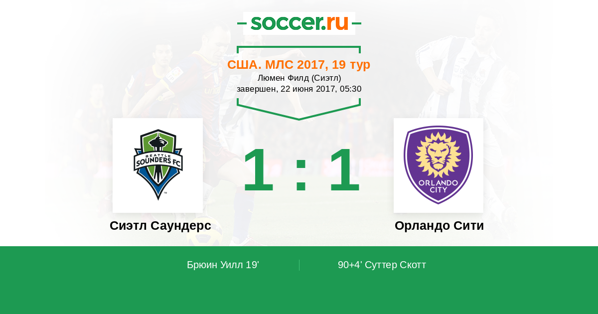 Протокол матча Сиэтл Саундерс против Орландо Сити