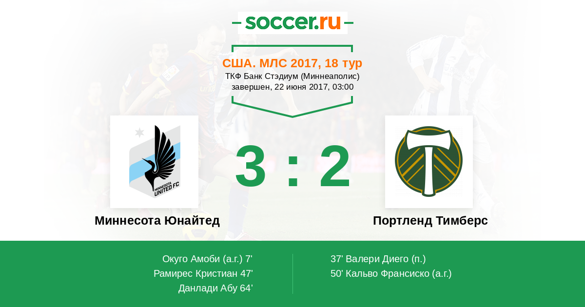 Протокол матча Миннесота Юнайтед против Портленд Тимберс