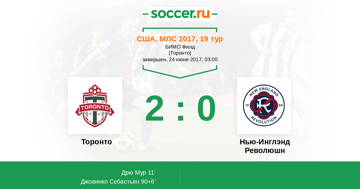 Протокол матча Торонто против Нью-Инглэнд Революшн