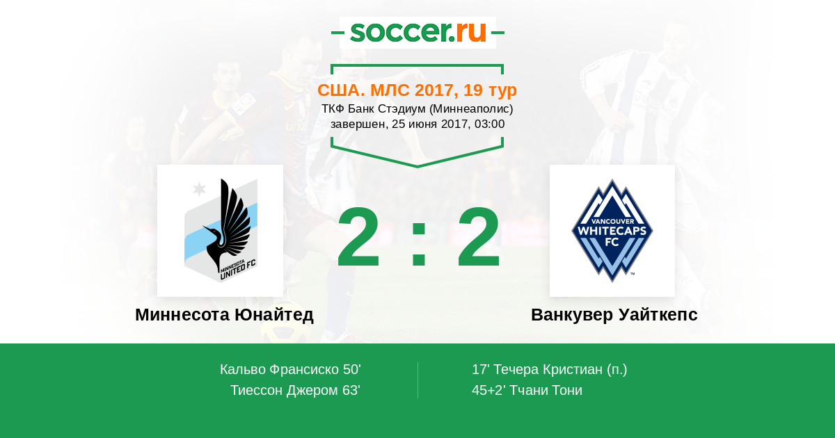 Протокол матча Миннесота Юнайтед против Ванкувер Уайткепс