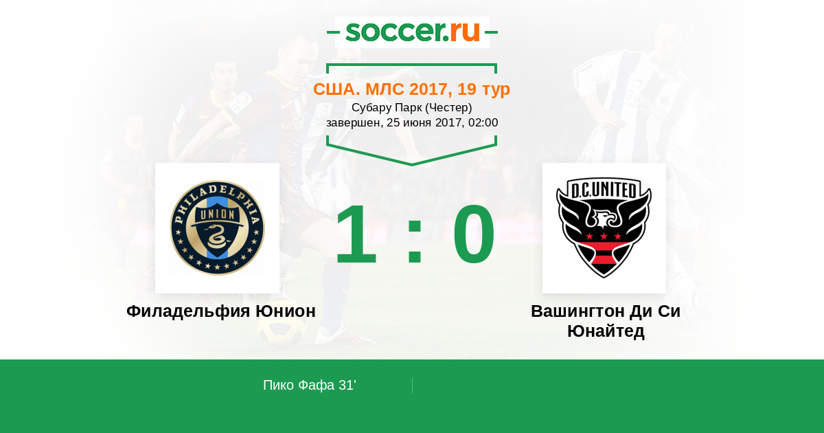 Протокол матча Филадельфия Юнион против Вашингтон Ди Си Юнайтед