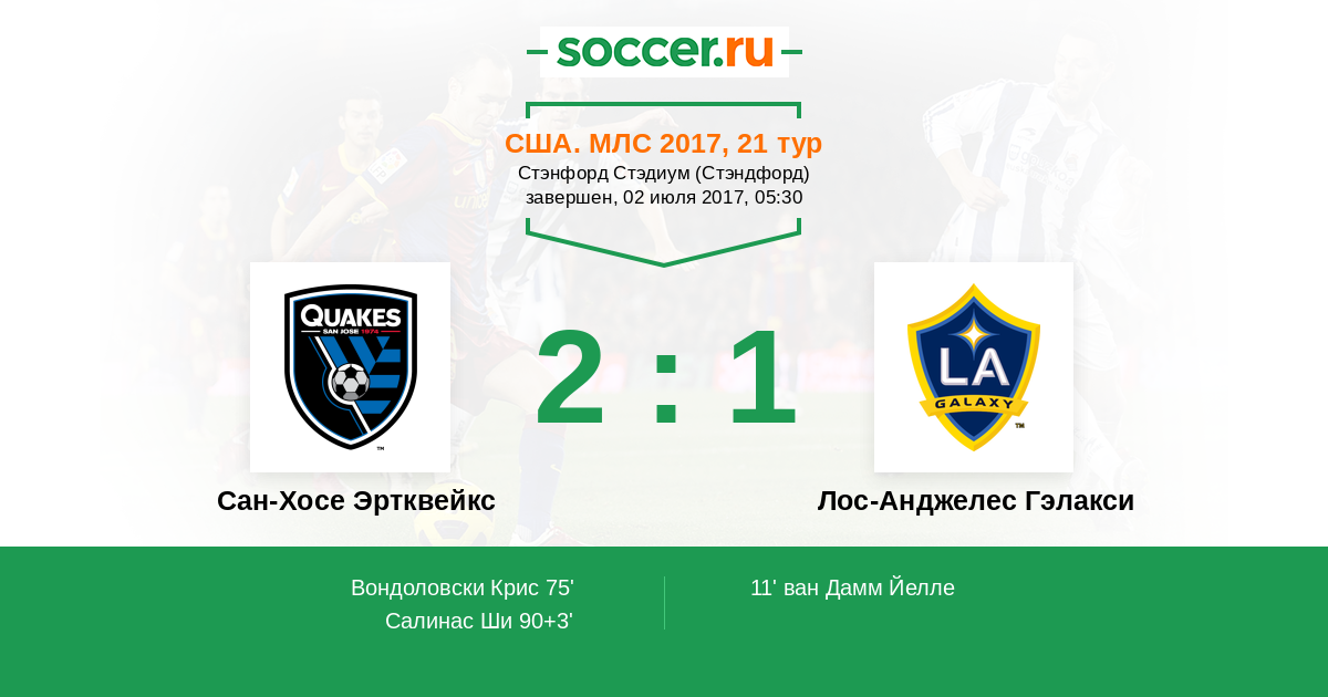 Протокол матча Сан-Хосе Эртквейкс против Лос-Анджелес Гэлакси