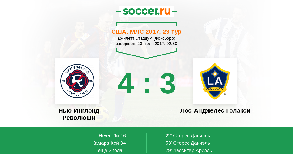 Протокол матча Нью-Инглэнд Революшн против Лос-Анджелес Гэлакси