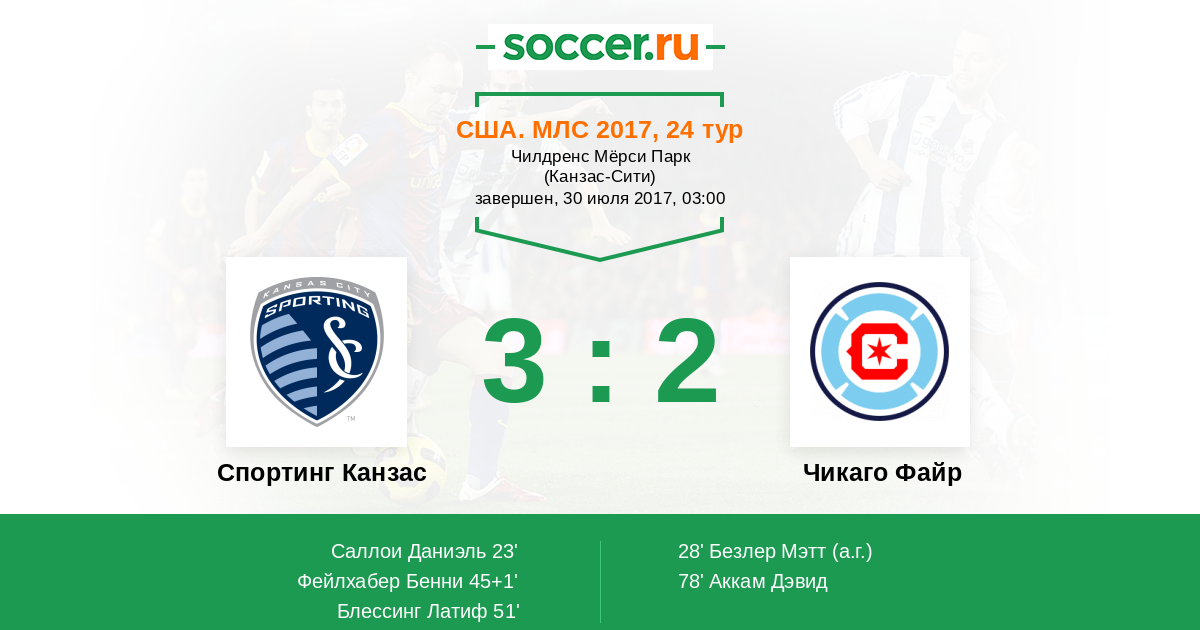 Протокол матча Спортинг Канзас против Чикаго Файр