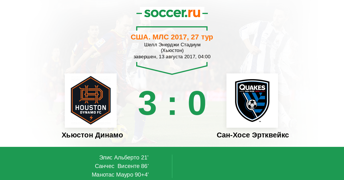 Протокол матча Хьюстон Динамо против Сан-Хосе Эртквейкс
