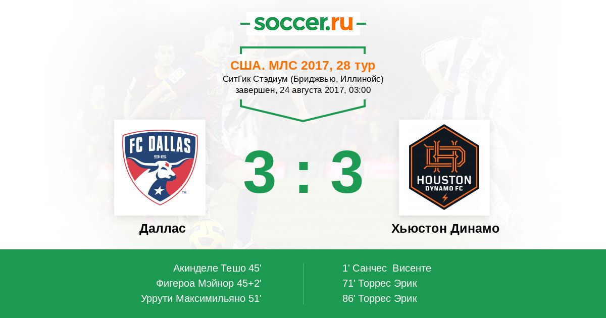 Протокол матча Даллас против Хьюстон Динамо