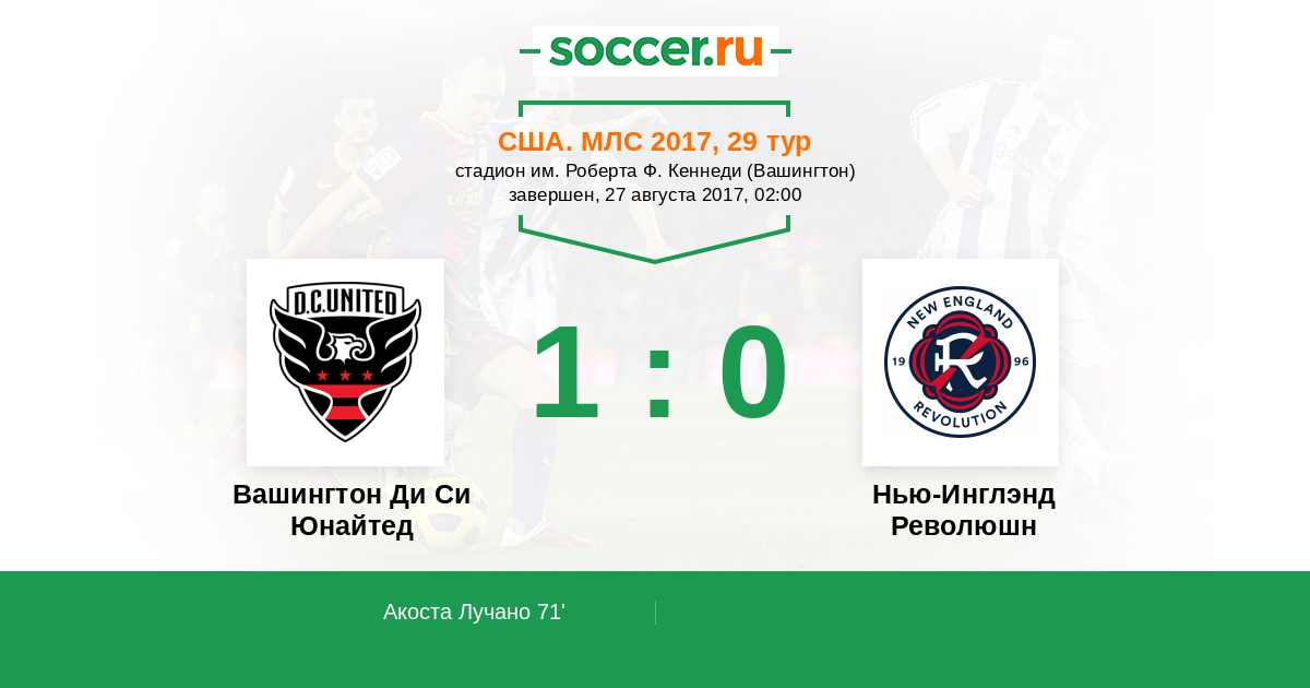 Протокол матча Вашингтон Ди Си Юнайтед против Нью-Инглэнд Революшн