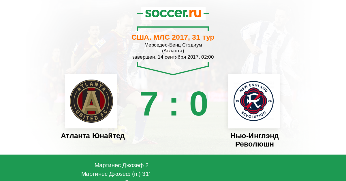 Протокол матча Атланта Юнайтед против Нью-Инглэнд Революшн