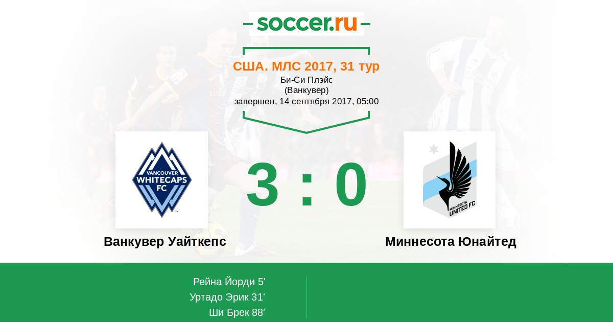 Протокол матча Ванкувер Уайткепс против Миннесота Юнайтед