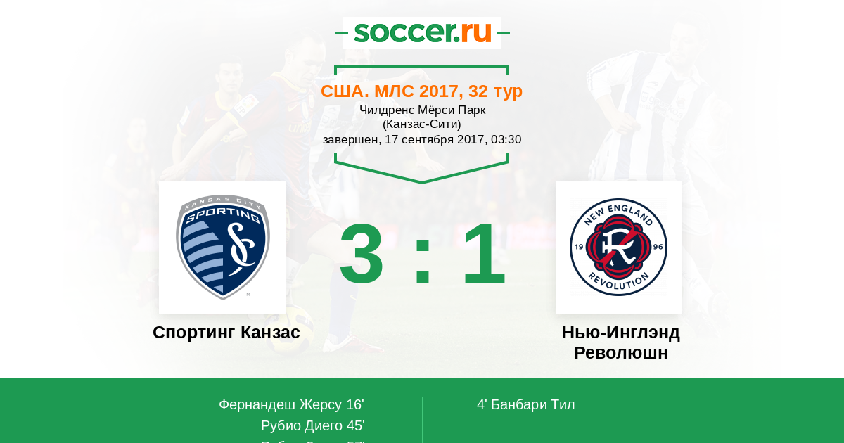Протокол матча Спортинг Канзас против Нью-Инглэнд Революшн
