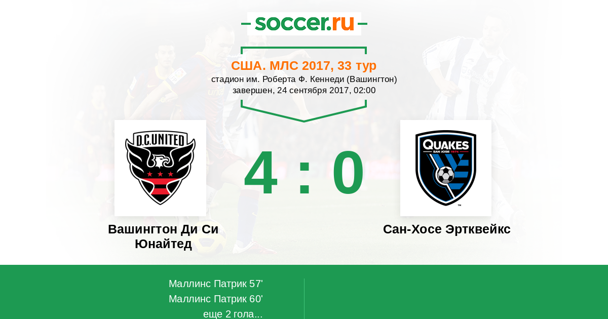 Протокол матча Вашингтон Ди Си Юнайтед против Сан-Хосе Эртквейкс