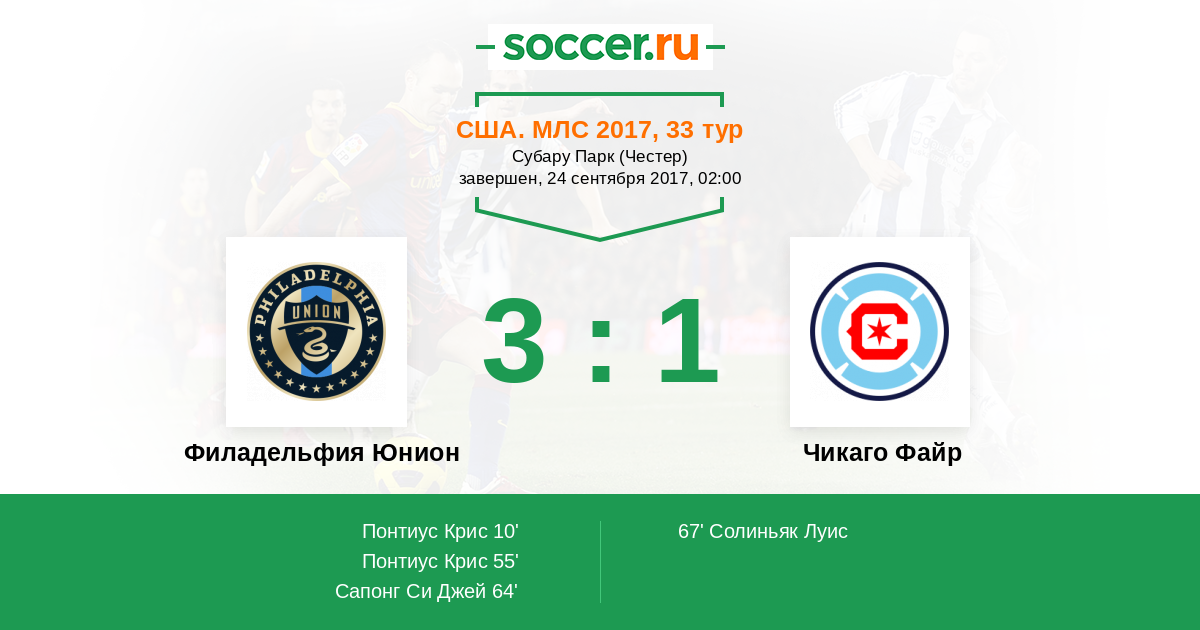 Протокол матча Филадельфия Юнион против Чикаго Файр