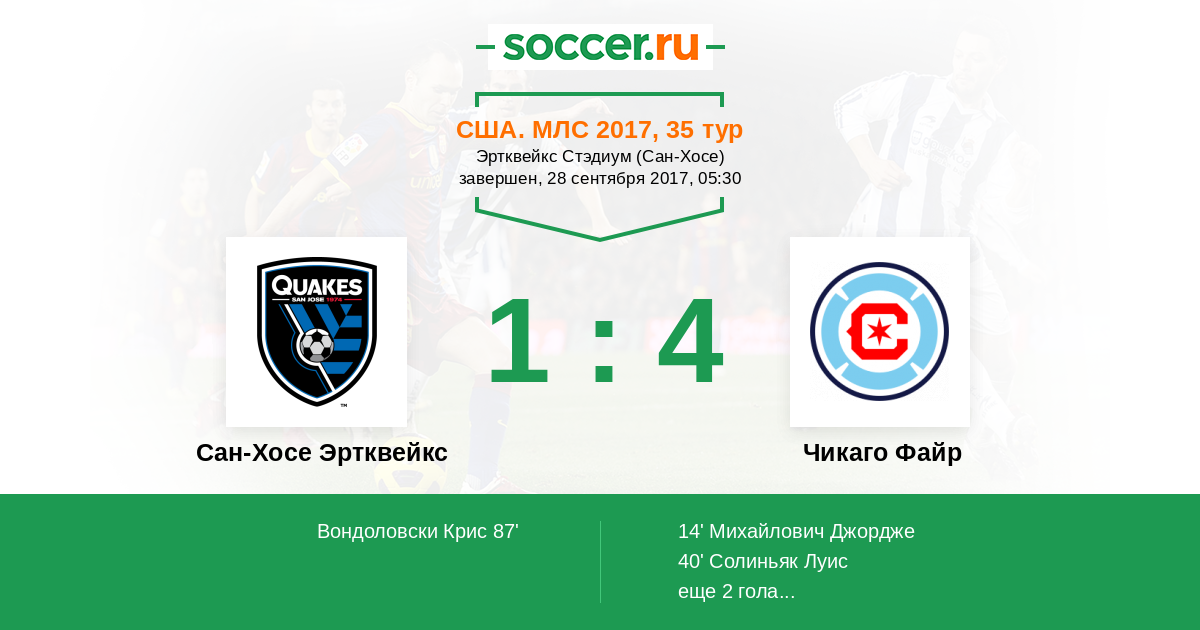 Протокол матча Сан-Хосе Эртквейкс против Чикаго Файр