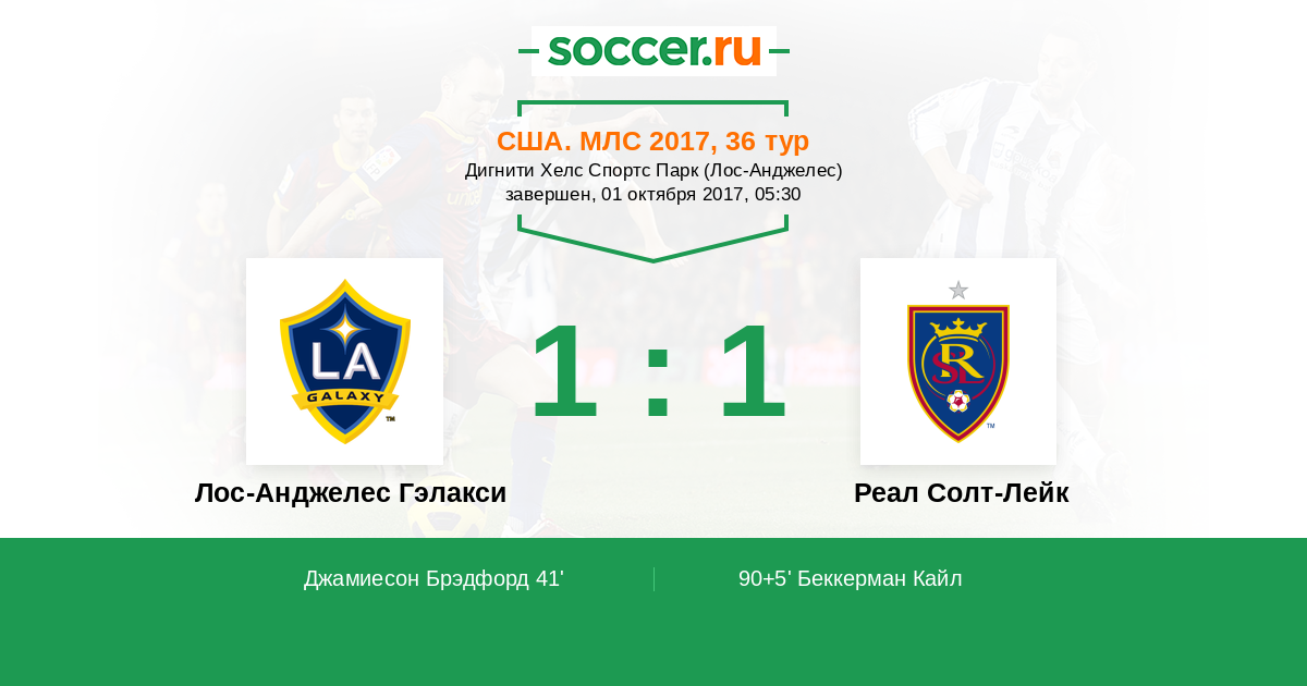 Протокол матча Лос-Анджелес Гэлакси против Реал Солт-Лейк