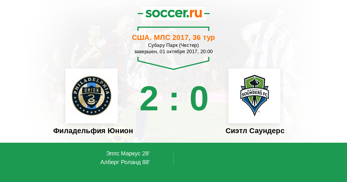 Протокол матча Филадельфия Юнион против Сиэтл Саундерс