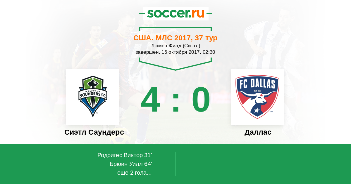 Протокол матча Сиэтл Саундерс против Даллас