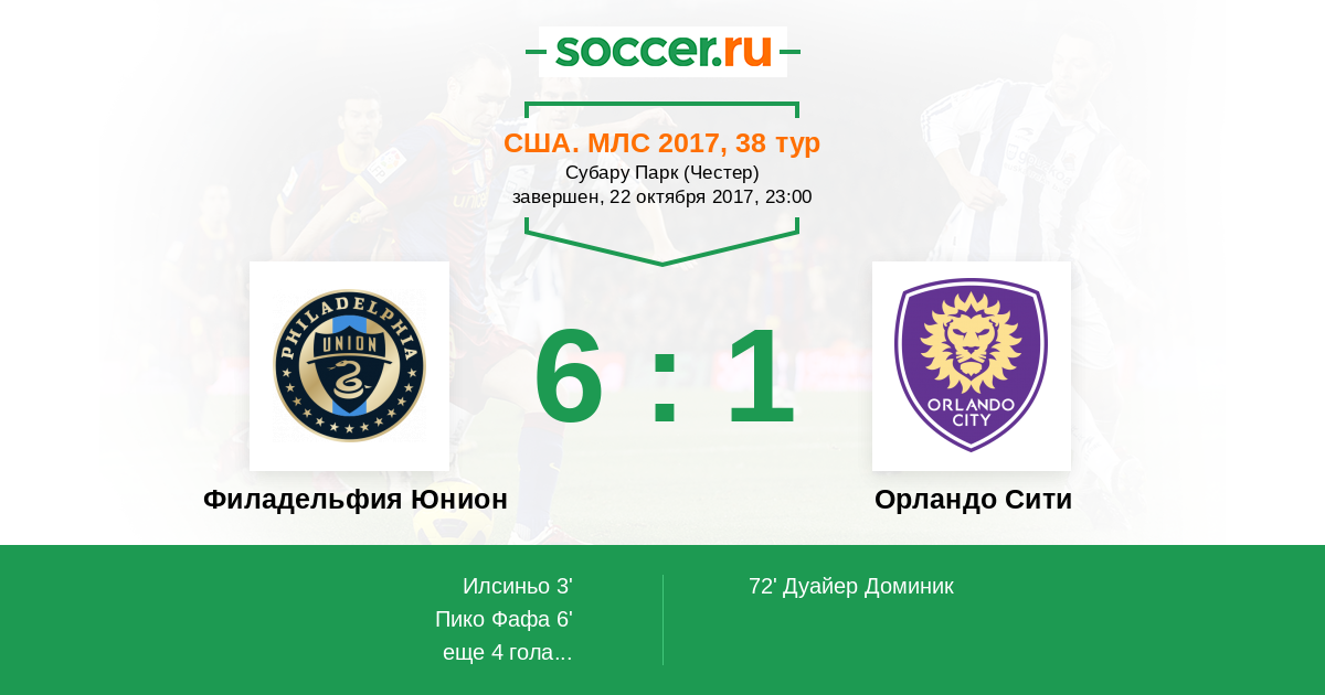 Протокол матча Филадельфия Юнион против Орландо Сити
