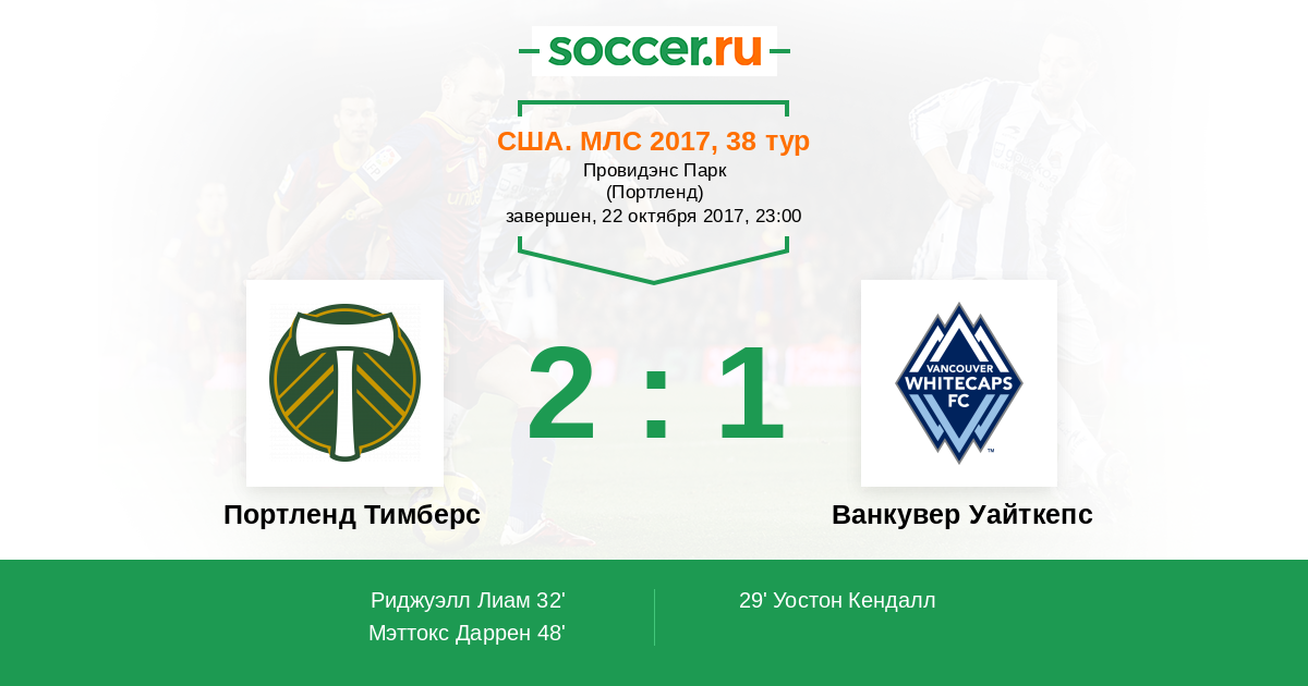 Протокол матча Портленд Тимберс против Ванкувер Уайткепс