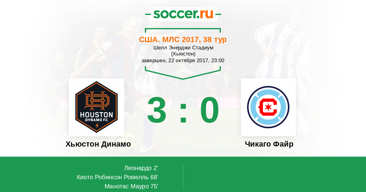 Протокол матча Хьюстон Динамо против Чикаго Файр