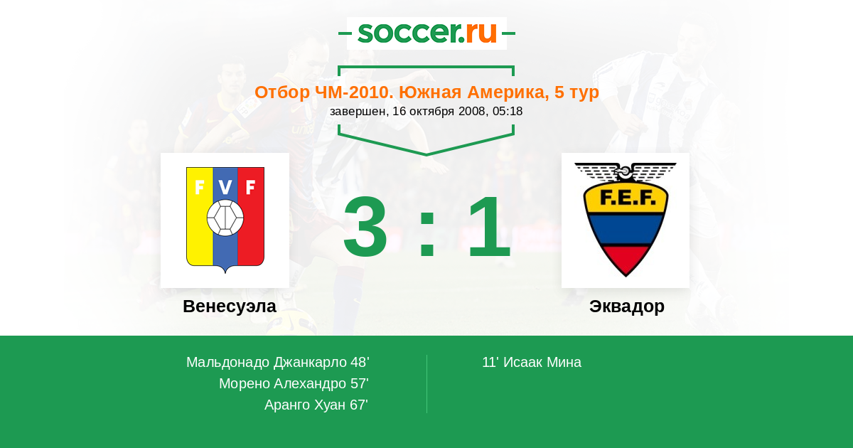 Протокол матча Венесуэла против Эквадор