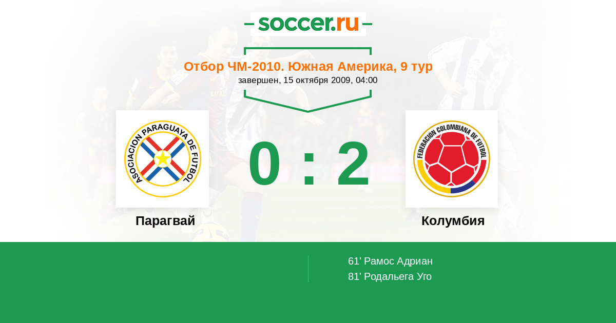 Протокол матча Парагвай против Колумбия