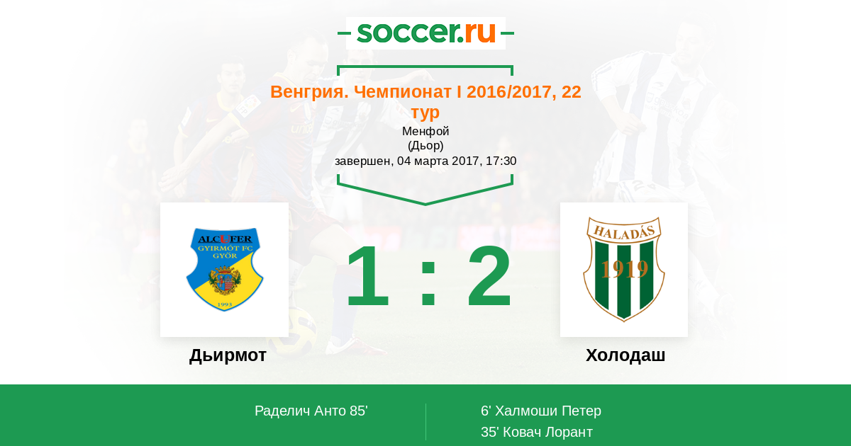 Протокол матча Дьирмот против Холодаш