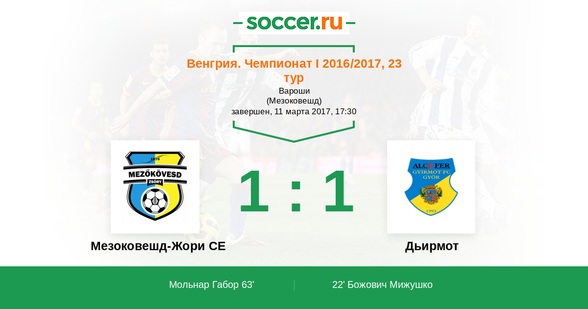 Протокол матча Мезоковешд-Жори СЕ против Дьирмот
