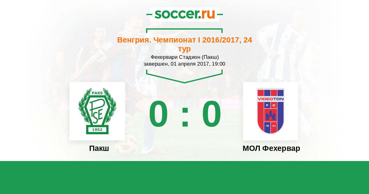 Протокол матча Пакш против Видеотон