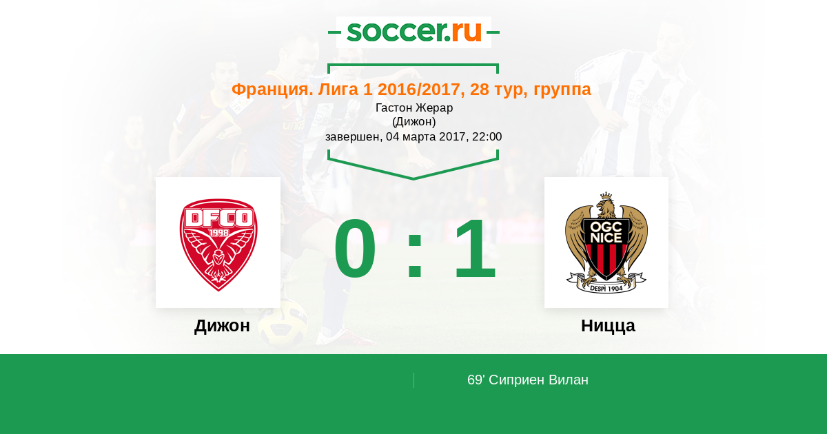Протокол матча Дижон против Ницца