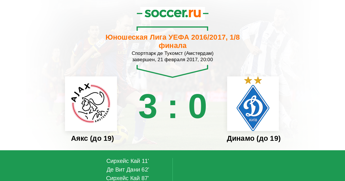 Протокол матча Аякс (до 19) против Динамо (до 19)